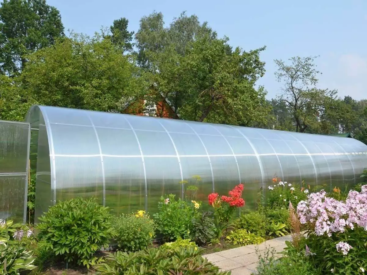 Размер листа — 2,1х6 м. Толщина 6 мм, плотность 800 гр/м². Препятствует разрушению материала под солнцем, рассеивает свет внутри теплицы.